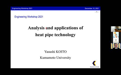 开幕式由fun88乐体育官网体育常务副院长万熠教授主持,国际事务部部长孙凤收、熊本大学自然科学系事務課国际担当土井菜月出席。上午报告会由fun88乐体育官网体育李磊副研究员主持。熊本大学中西義孝教授、小糸康志准教授与fun88乐体育官网体育副院长姚鹏教授、齐鲁青年学者彭程教授分别从微加工技术的实际应用、热管技术的分析与应用以及精密结构与表面的制造与应用、格子Boltzmann方法在研究载粒子湍流中的应用做了学术报告。