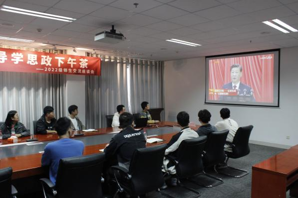 座谈会结束后,与会师生共同观看了党的二十大精神学习宣传片,深刻领悟党的二十大会议精神。与会学生表示,作为当代青年主力军,要深入贯彻落实习近平新时代中国特色社会主义思想,把自己的思想实际与党的最新理论相结合,坚定“四个自信”,为中华民族伟大复兴而努力奋斗。